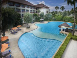 อีก 1 โรงแรมระดับ 3 ดาวที่การออกแบบดีไซน์ตัวอาคารนั้นมีความ Modern เป็นสถาปัตยกรรมแนวใหม่ที่เริ่มมีใช้ในต่างจังหวัดกันบ้างแล้ว และที่นี่ก็เป็นอีกหนึ่งโรงแรมที่น่าอยู่มากๆส่วนของพื้นที่โรงแรมเป็นวิวสวน ซึ่งเราสามารถใช้บริการนั่งเล่นในสวนหย่อมต่างๆ เหล่านี้ได้อีกด้วยนอกจากนี้ในส่วนของห้องพักยังมีความกว้างขวางตกแต่งในสไตล์โมเดิร์น  เฟอร์นิเจอร์ที่ใช้รวมไปถึงงาน Built in โต๊ะตู้เตียงต่างๆ ส่วนใหญ่มีความทันสมัย นอกจากนี้ด้านนอกยังเป็นวิวธรรมชาติ วิวทะเล และวิวสวนเราสามารถเลือกห้องที่มีวิวต่างๆ ได้ตามต้องการ ส่วนบริการอื่นๆ คือ สระว่ายน้ำในร่มและสระว่ายน้ำกลางแจ้งที่อยู่บนชั้นดาดฟ้าให้เราใช้ได้เช่นกันค่ะ