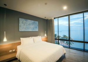 บอกเลยค่ะว่าสำหรับที่นี่ให้บริการห้องพักที่มีความหรูหราและเต็มไปด้วยความโล่งโปร่งสบายโดยเฉพาะอย่างยิ่งในห้องพักแบบต่างๆซึ่งออกแบบได้อย่างโมเดิร์นมีความทันสมัยในส่วนของเฟอร์นิเจอร์ต่างๆมากมายไม่ว่าจะเป็นเตียงนอนโต๊ะตู้เก้าอี้ต่างๆนอกจากนี้ยังปูพื้นด้วยไม้ปาเก้อย่างดีมีวิวทะเลให้ดูจากห้องพักได้เลยทีเดียว นอกจากนี้แล้วยังมีห้องฟิตเนสให้บริการและมีจักรยานให้ ใช้บริการฟรีอีกด้วย